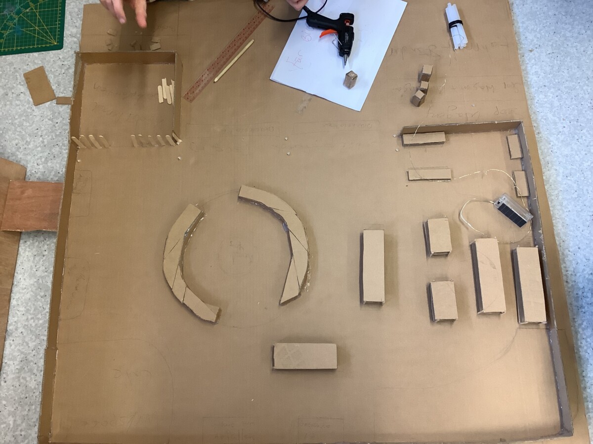 Während unserer Gruppenarbeit sind auch einige Probleme aufgetreten. Zum einen hatten wir Zeitdruck, da wir unser Modell in einem begrenzten Zeitraum planen und umsetzen mussten. Dadurch mussten wir manche Ideen vereinfachen oder ganz weglassen. Zum Beispiel fiel es uns schwer, ein Technisches Element zu entwickeln. Zuerst wollten wir eine selbst öffnende Tür oder Lichter mit Schalter einbauen. Schließlich haben wir uns für eine modelhafte Solarbeleutung entschieden und den Fokus stattdessen auf die Bedürfnisse der Persona gelegt. Zum anderen war es schwierig, Sponsoren oder zusätzliche finanzielle Unterstützung zu finden. Das hat uns vor Herausforderungen bei der Materialbeschaffung gestellt. Trotzdem haben wir als Team gut zusammengearbeitet und kreative Lösungen gefunden, indem wir private Spenden genutzt und ausschließlich recycelte Materialien verwendet haben.