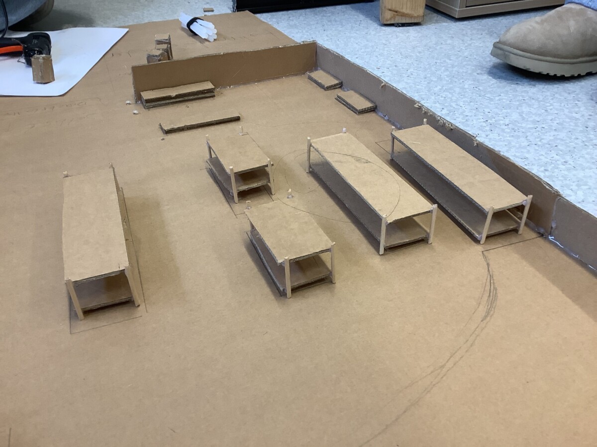 Unsere Zielsetzung war klar: Wir wollten einen Supermarkt entwerfen, der sowohl nachhaltig als auch familienfreundlich und barrierefrei ist. Besonders wichtig waren uns dabei die Perspektiven unserer Personas. Simone (34), die als Erzieherin mit Kinderwagen einkaufen geht, wünscht sich breite Wege und eine entspannte Atmosphäre. Alma (42), die im Rollstuhl sitzt, ist auf echte Barrierefreiheit angewiesen – niedrige Regale, gut erreichbare Kassen und ausreichend Platz zum Manövrieren. Elias (29), Innenarchitekt, legt Wert auf eine klare Struktur und eine logische Anordnung der Produkte. Die Herausforderung bestand darin, all diese Bedürfnisse in einem einzigen Modell zu vereinen. Zusätzlich hatten wir mit Zeitproblemen zu kämpfen und fanden keine offiziellen Sponsoren. Unsere kreative Lösung: Einige Gruppenmitglieder brachten private Spenden und Materialien mit. Alle verwendeten Materialien waren recycelt – so blieb unser Projekt auch beim Bau nachhaltig. Unsere Projektidee ist ein nachhaltiger Supermarkt, der von Anfang an für alle Menschen mitgedacht ist. Das Herzstück bildet ein offener Bereich in der Mitte mit einer Obst- und Gemüsetheke. Dieser zentrale Platz sorgt für Übersichtlichkeit und kurze Wege. Von dort aus sind die verschiedenen Abteilungen logisch angeordnet, sodass Kundinnen und Kunden intuitiv durch den Markt geführt werden. Die klare Struktur hilft besonders Menschen wie Elias, die Wert auf Ordnung und schnelle Orientierung legen.Ein zentraler Bestandteil unseres Konzepts sind breite Gänge, die sowohl für Rollstuhlfahrerinnen und Rollstuhlfahrer als auch für Eltern mit Kinderwagen ausreichend Platz bieten. So wird Einkaufen nicht zum Hindernislauf, sondern zu einem angenehmen Erlebnis. Für Familien wie die von Simone haben wir zusätzlich einen Kinderbereich mit Betreuung und einer kleinen Spielecke geplant. So können Eltern in Ruhe einkaufen, während ihre Kinder sicher beschäftigt sind. Direkt daneben gibt es einen Abstellbereich für Kinderwagen. Außerdem bieten wir normale Einkaufswagen sowie kleine Kindereinkaufswagen an, damit Kinder spielerisch eingebunden werden können.Auch das Thema Nachhaltigkeit spiegelt sich in unserem Konzept wider. Kundinnen und Kunden können viele Produkte wie Müsli, Nüsse oder Getränke selbst abfüllen und wiederverwendbare Verpackungen nutzen. Digitale Kassenbons sparen Papier, und durch eine durchdachte Beleuchtung wird Energie effizient eingesetzt. Zusätzlich setzen wir auf Bio-Produkte, eine Fleischtheke, eine Bäckerei sowie auf ein ausgewähltes Angebot an veganen Alternativen. So verbinden wir ökologische Verantwortung mit einem modernen Einkaufserlebnis. Die Skizze zeigt einen nachhaltigen Supermarkt. In der Mitte gibt es einen offenen Bereich mit Bio-Produkten und Stationen, an denen man Lebensmittel ohne Verpackung abfüllen kann. Obst und Gemüse stammen teilweise aus einem Gewächshaus, in dem man auch selbst mithelfen oder ernten kann. Außerdem gibt es eine Fleischtheke, eine Bäckerei sowie vegane Produkte. Für Kinder ist ein eigener Bereich mit Betreuung geplant, während Erwachsene im Café oder in einem Workspace sitzen können. Der Markt legt großen Wert auf Umweltschutz, zum Beispiel durch Solaranlagen, Fahrradständer und die Rückgabe von Verpackungen.