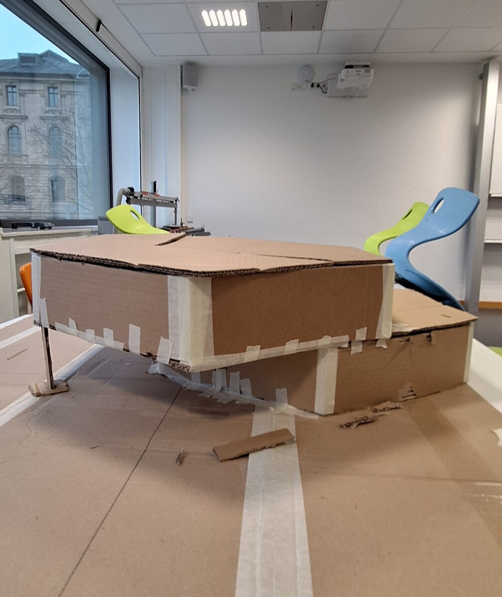 Die größte Schwierigkeit war das Umrechnen der Maße. Wir mussten echte Größen in Modellgrößen übertragen und dabei sehr genau rechnen. Das hat viel Zeit gekostet und uns oft ausgebremst. Häufig mussten wir neu nachrechnen, weil kleine Fehler große Auswirkungen auf das Modell hatten.Auch die Raumaufteilung war nicht immer einfach. Wir mussten mehrmals überlegen, wo Regale, Wege und Räume am besten passen. Manche Ideen wirkten zuerst gut, funktionierten später aber nicht. Dann mussten wir neu planen und Lösungen finden. Trotzdem konnten wir die Probleme meistens gemeinsam lösen und manchmal entstanden dadurch sogar bessere Ideen.