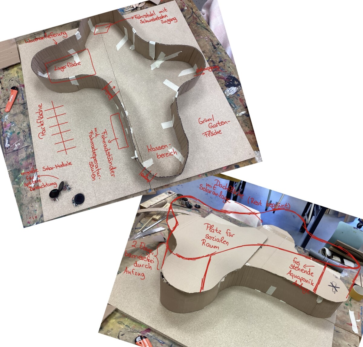 Zuerst haben wir eigene Ideen gesammelt. Gleich zu Beginn haben wir festgelegt, dass unser Markt auf erneuerbare Energie betrieben werden soll und wir versuchen wollen, den CO2-Fußabdruck so gering wie möglich zu halten.